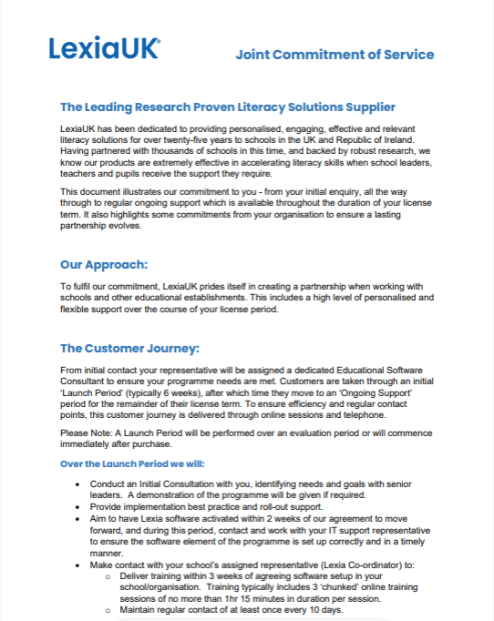 Further product, training and implementation resources are available from an active myLexia teacher account interface or your LexiaUK consultant.